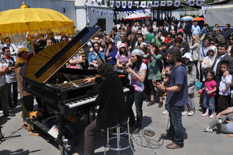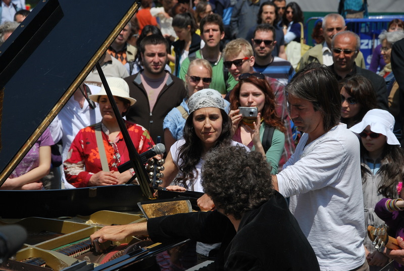 Sehnaz Sam est une chanteuse à la notoriété grandissante. Elle est la fille de Leman Sam, l’une des interprètes les plus célèbres de Turquie. Lors du concert de Marc dans le marché bio de Kartal (quartier d’Istanbul), Sehnaz dont le répertoire est plutôt constitué de chansons populaires, a accepté de se lancer dans un exercice d’improvisation. « C’était la première fois que je faisais cela », raconte t-elle « Dans mes chansons à moi, il y a toujours un début et une fin. Quand Marc m’a proposé cette improvisation, j’ai d’abord eu un peu peur, mais il m’a encouragée et m’a assurée que j’allais y arriver. On a fait un essai au Miniaturk Park à Istanbul le 30 avril et j’ai compris que j’allais réussir. Je suis très contente d’avoir tenté cette expérience. Marc et moi on s’est rencontrés il y a deux jours et pourtant, j’ai l’impression qu’on se connaît depuis très longtemps ».