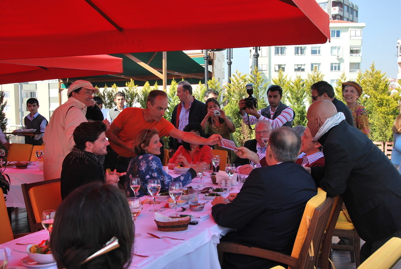 Le maire de Kartal, Altinok Öz, a offert une belle surprise à la Caravane amoureuse en réservant spécialement pour elle, le dernier étage d’un prestigieux restaurant de la ville, le Galatali Balik. Parmi les convives, la femme du maire et Adnan Polat, le président du Galatasaray Istanbul, club de football qui dispute régulièrement la Ligue des Champions. Personnalité très respectée dans toute la Turquie, Adnan Polat n’a pas caché son admiration pour notre démarche : « Je trouve votre action extraordinaire et j’y suis très sensible. J’adhère complètement à votre démarche. Le monde a besoin d’amour ».