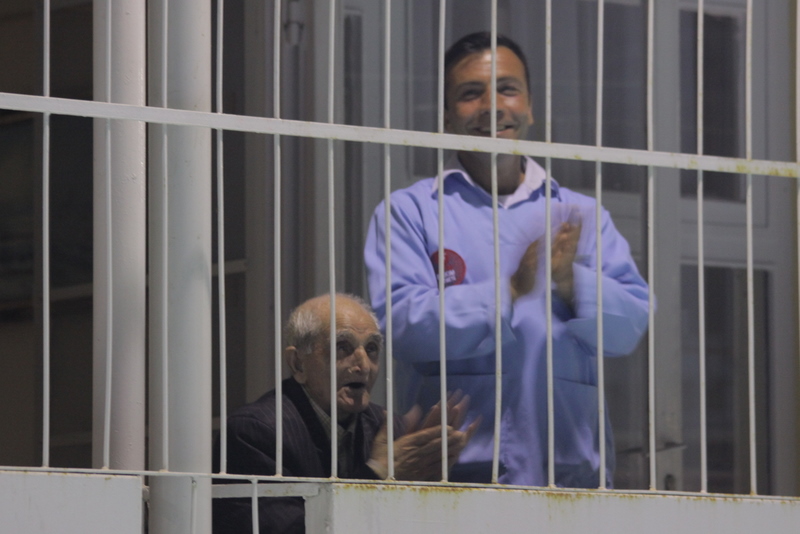 Certains résidents n'ont pas pu se rendrent dans la cour et assistent depuis leur balcon sous le regard tendre du personnel, au concert.