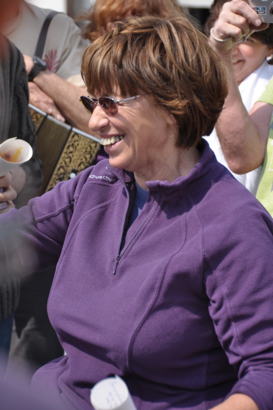 Elle écoute attentivement assise sur sa chaise au premier rang. Son déambulateur, elle le tient juste devant, rassurant. Je m’approche tout doucement, lui tend les mains. Les bras liés forment un premier mouvement qui lui donne envie de se lever. Alors, le déambulateur nous sert d’appui pour oser les premiers pas, et entrer dans le cercle dansant. On se regarde, on se sourit. Elle ose alors écarter ce qui lui sert de tuteur et met ses deux mains sur mes hanches, confiante. Ainsi, ce n’est pas un, ni deux, mais trois tours de danse qu’ensemble nous avons avec une joie d’enfants, partagés tout simplement.