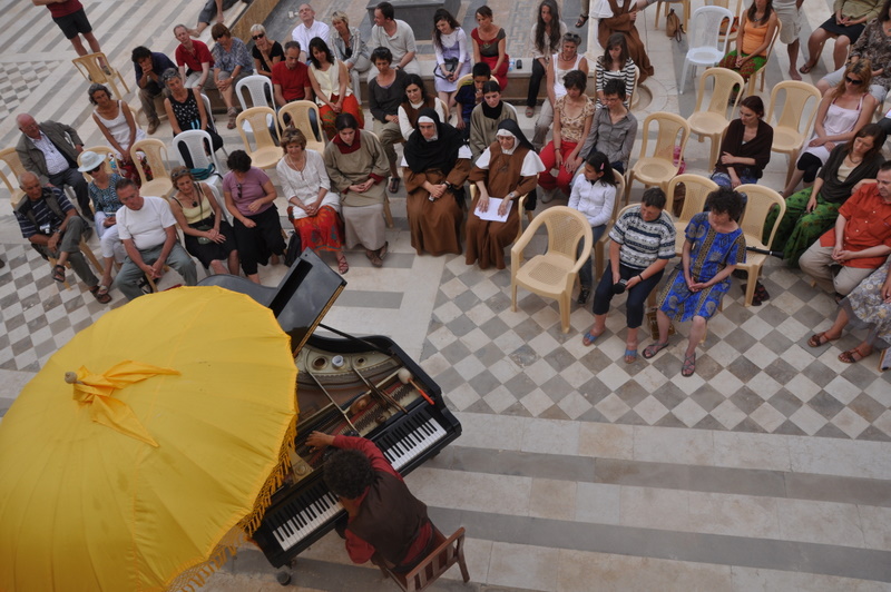 Marc termine son concert à l’université de Kalamoon et comme souvent propose une ballade à quatre mains sur son piano à une personne de l’assemblée. Mère Agnès Maryam est cette fois à l’œuvre.