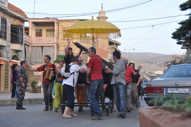 La générosité de leur accueil se poursuit autour d'un festin, où se mélangent le français, l'anglais et l'arabe. Avidité d'échanges et de partages. Nous sommes ensuite guidés l'après-midi à la découverte de la ville et des temples de Baalbeck. S'ensuit une déambulation dans la ville avec le piano, qui draine dans son sillage les habitants interpellés par ce cortège. Sourires et danses envahissent les trottoirs, les rues, les échoppes et les coeurs pour nous mener sur le parvis du centre culturel français, où est prévu le concert du soir. Outre un duo de oud avec Marc au piano et une démonstration puissante d'une troupe traditionnelle de Dabké, ce concert sera l'occasion pour de jeunes musiciens libanais de jouer du hard rock. Nous ne saisirons la portée de cet événement que le lendemain, en apprenant que la dernière fois que ce fut possible, c'était avant la guerre. La Caravane apporte un souffle de liberté, parfois le vent tourne …
