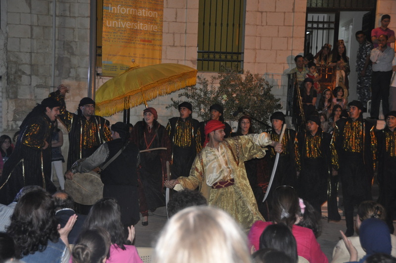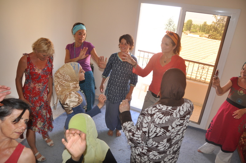 Nous transportons nos sourires dans la pièce d’à côté où, après avoir regardé quelles autres spécialités elles préparent (confitures, confits de légumes, eau de fleur d’oranger, vinaigre de raisin, sirop de grenadine, olives, savons…) nous nous mettons à danser sur des musiques traditionnelles et nous laissons bientôt transporter. La joie nous envahit : que nous sommes radieuses et libérées ! Nous en profitons pour nous exercer à danser les pas de base du Dabké, la danse traditionnelle que nous danserons avec la même joie le soir même à la fin du concert.