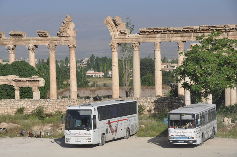 After a night passed a few kilometers after the Syrian - Lebanese border, we head ourselves toward Baalbeck. Welcomed by the French Cultural Service of this town, the Caravaniers are divided into ten groups for visiting the different cultural and human organizations. After a visit of the Roman ruins of Baalbeck (splendid) and a concert in front of the French Cultural Service, most of the Caravaniers are invited to dine and sleep at the home of the Baalbeck residents. Unforgettable moments !