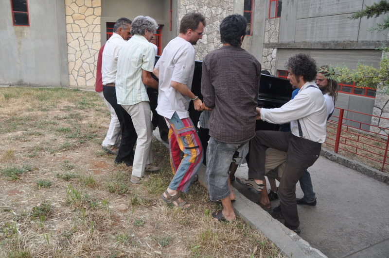 Installation du piano sur la pelouse