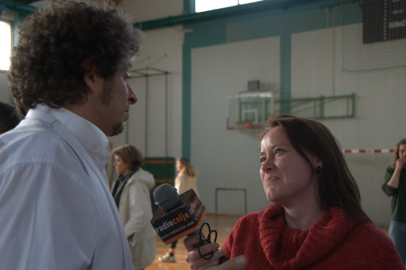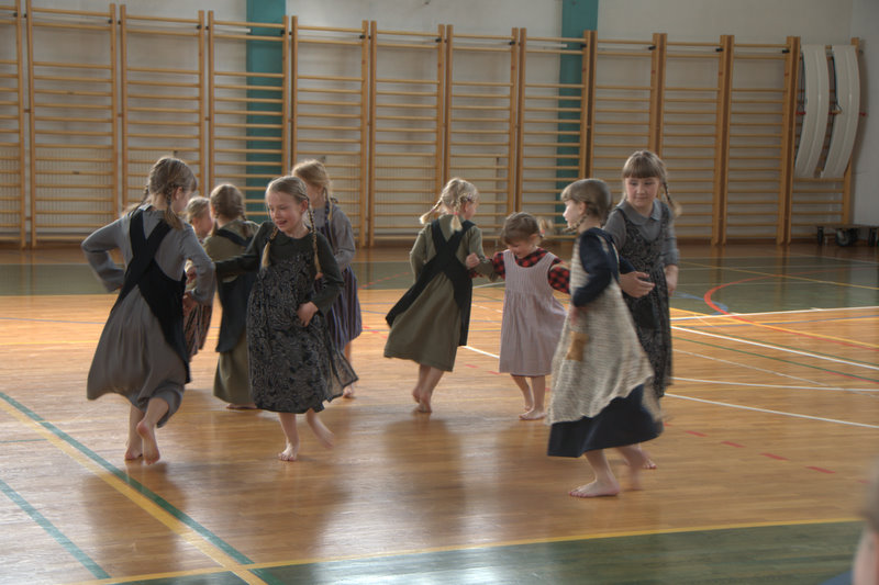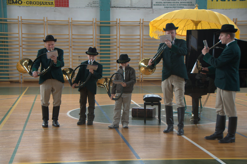 16 h, l’heure du spectacle unissant slovènes et caravaniers approche. Tout le monde est impatient et curieux de ce que chacun a préparé. Le piano est amené au cœur du gymnase. Le spectacle commence au son de la fanfare de Ljubecna. Quelques petites majorettes manipulent déjà leur bâton avec beaucoup de dextérité. Suit une chorale d’hommes et puis quelques rondes et farandoles sur un air d’accordéon. Douze petites « anges » dansent pieds nus en tablier et tresses et nous rafraichissent le cœur. Marie-Astrid, pianiste, accompagne d’autres chants slovène. Nous sommes ensuite emmenés par le talent d’un tout jeune accordéoniste d’une dizaine d’année. La fête se poursuit au son du cor et dans l’Hymne à la Joie repris en coeur.