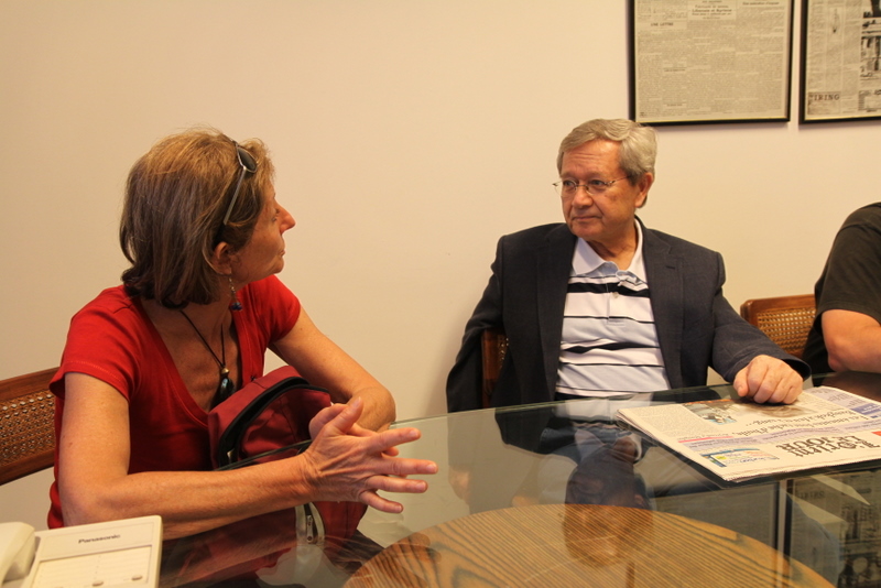 A l'âge de 7 ans, il lisait déjà l’Orient. Il est très curieux de notre projet de voyage et nous pose beaucoup de questions. « C’est une initiative magnifique, mais confrontée aux dures réalités, il faut continuer à prendre ce genre d’initiatives ». Il évoque la liberté d’expression de la presse libanaise « c’est un exemple unique au Moyen-Orient. Les journalistes peuvent s’exprimer et ils n’ont pas leur langue dans leur poche ». Il rappelle aussi que le Liban est une grande mosaïque constituée de 18 communautés religieuses « à l’Orient le Jour, nous luttons pour que cette exception demeure et que notre pays continue d’être un exemple ». Anna Tabet, une jeune stagiaire a écrit cette semaine : la Caravane amoureuse, messager d’amour et de paix au Liban. La semaine prochaine, un autre article fera un compte-rendu de notre parcours et de nos rencontres. Le contenu rédactionnel du lendemain n’est pas établi ; il y sera sûrement question des élections municipales et de la visite de Bernard Kouchner, ministre français des affaires étrangères, concernant, entre autre, l’ouverture de la frontière libano-syrienne dans le domaine économique.