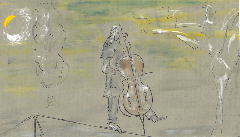 Céline et son violoncelle sur sa corde,