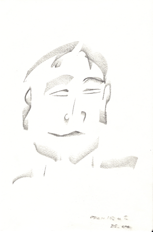 Passionné par les expériences musicales, comme celle de George Harrisson avec Ravi Shankar, Peter a été profondément touché par Marc, son piano et ses variacordes. Alors, la cigarette en permanence aux lèvres, il a sorti son bloc à dessin et s’est mis à croquer le pianiste. « Son rythme a provoqué mon rythme ». Un pied, un visage, une paire de bretelles, rien n’a échappé à l’œil de Peter. Pour finir, il détache du bloc tous ses dessins et les offre à Marc. « Il m’a mis dans le cœur quelque chose de très touchant » dit-il.