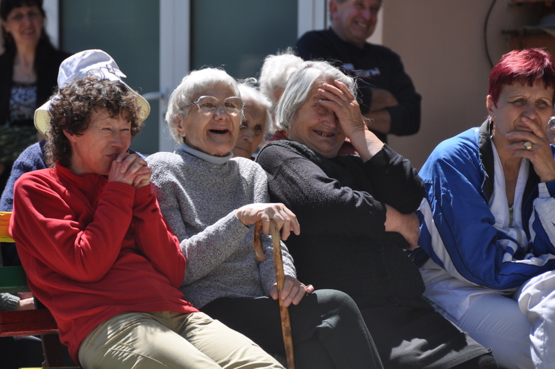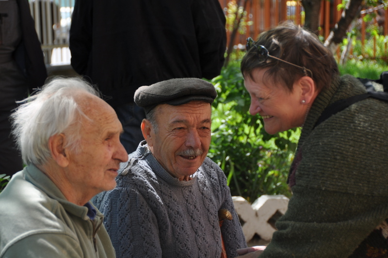 La porte de sa chambre, sobrement décorée, s’ouvre et nous la retrouvons sur son balcon. Elle est belle encore, Maria et toujours coquette. A la vue de l’œillet qui lui est offert, elle sourit, émue. Certes, sa mémoire lui joue des tours et ses souvenirs sont épars mais le passage de la Caravane a ravivé en elle une foule d’images. Son père, Assen, a été violoncelliste dans l’orchestre de l’armée bulgare et Maria aime beaucoup la musique. Aussi le passage de la Caravane est-il pour elle une bénédiction.