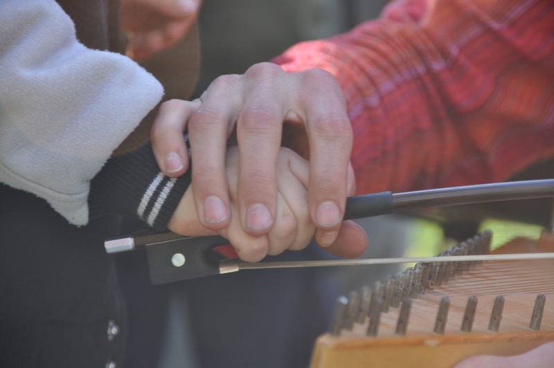 pendant que Cathy, un peu plus loin, fait découvrir la résonnance du violoncelle