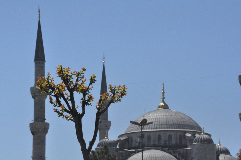 Nous déjeunons tout d’abord dans un restaurant situé entre la Mosquée bleue et la basilique Sainte Sophie. La vue sur ces édifices et l’appel à la prière nous invitent au recueillement pendant le repas.