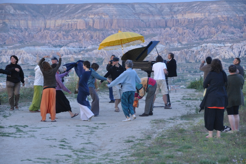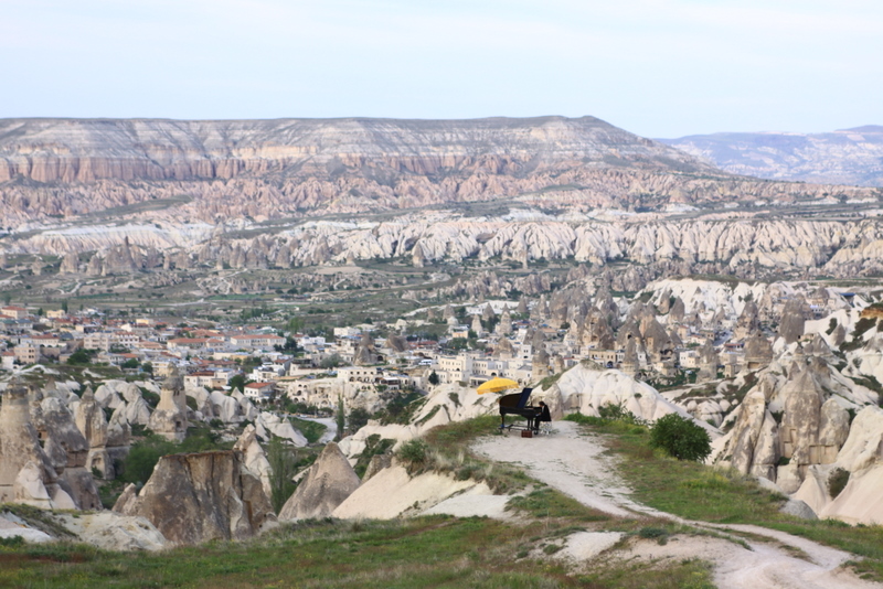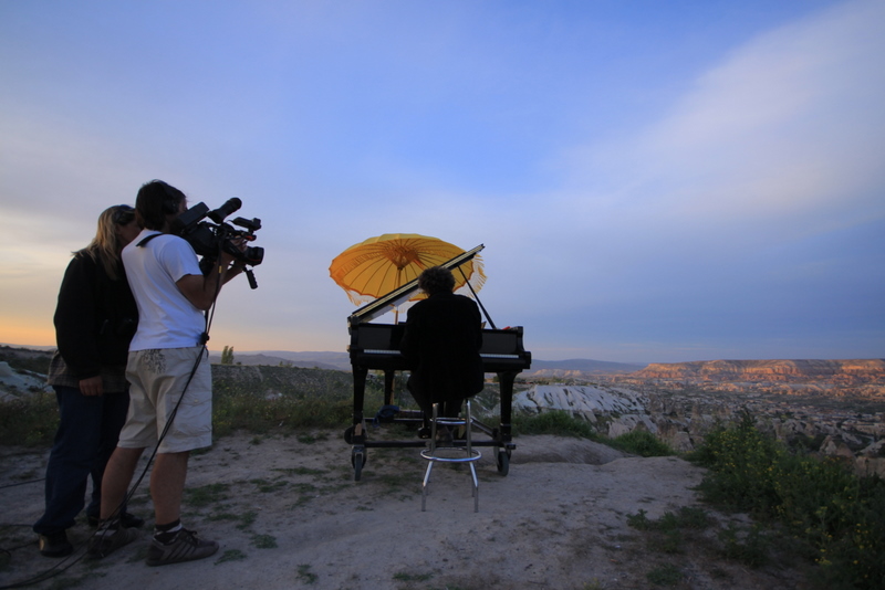 La Caravane amoureuse aime sortir des sentiers battus. Une place est toujours laissée à l’improvisation. Partis à l’aube, d’Ahlatlibel près d’Ankara, nous avons fait une halte dans un paysage de rêve, au bord du lac salé de Tuz Gölu. Puis nous nous sommes arrêtés en Cappadoce. Au bord d’un canyon d’une beauté à couper le souffle, près de Göreme, Marc a installé son piano et les notes de musique se sont envolées vers les maisons troglodytes et les cheminées de fées jusqu’au coucher du soleil...