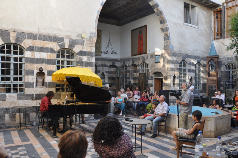 Le concert a lieu chez un sculpteur Syrien, Mustafa Ali, dans un patio magnifique. Certains syriens, touchés par ce moment de partage, prolongeront l’échange en accompagnant notre déambulation pour retourner aux bus.