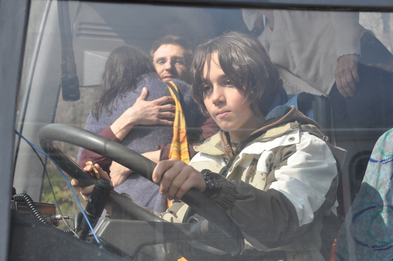 Direction Spinea, en Italie. Le premier arrêt groupé, sur une aire d’autoroute nichée entre deux montagnes, peu avant le Tunnel de Turin nous ravit : nous nous retrouvons sur le même parking qu'un car de prêtres de la région de Rome. Ils sont en soutane noire et col blanc. Les quatre autobus côte à côte, l'Amour en commun : quel beau symbole. Surprise et émotion lorsqu’un prêtre se met à bénir la Caravane et tous les Caravaniers ! Qu’il soit remercié du fond du cœur. En remontant dans son bus, un prêtre dit en français : ‘’ Que c’est beau, l’Amour !’’
