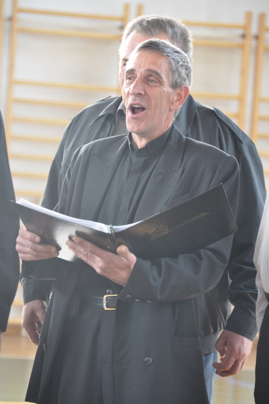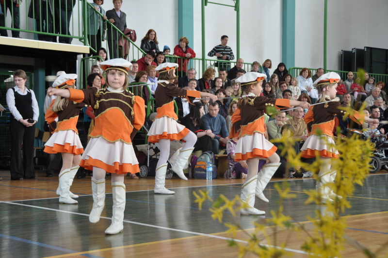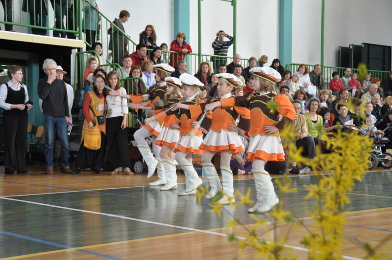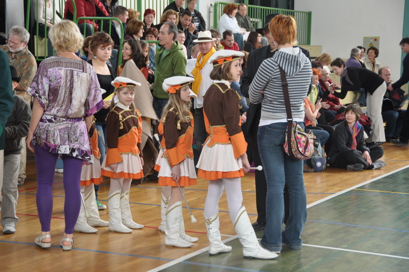 16 h, l’heure du spectacle unissant slovènes et caravaniers approche. Tout le monde est impatient et curieux de ce que chacun a préparé. Le piano est amené au cœur du gymnase. Le spectacle commence au son de la fanfare de Ljubecna. Quelques petites majorettes manipulent déjà leur bâton avec beaucoup de dextérité. Suit une chorale d’hommes et puis quelques rondes et farandoles sur un air d’accordéon. Douze petites « anges » dansent pieds nus en tablier et tresses et nous rafraichissent le cœur. Marie-Astrid, pianiste, accompagne d’autres chants slovène. Nous sommes ensuite emmenés par le talent d’un tout jeune accordéoniste d’une dizaine d’année. La fête se poursuit au son du cor et dans l’Hymne à la Joie repris en coeur.