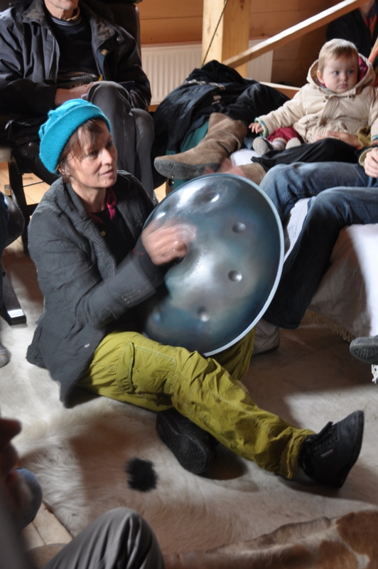 Marie-José a sorti son instrument, le hang, alternance de sons résonnés ou percutés, inspiré des tonneaux jamaïcains.