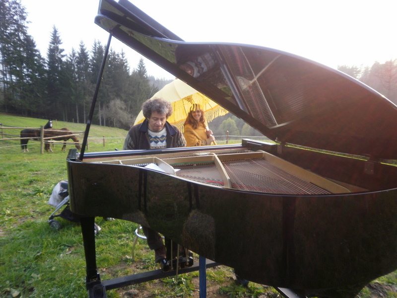 Evening : Marc played piano in a field among horses : Trust and Serenity.
