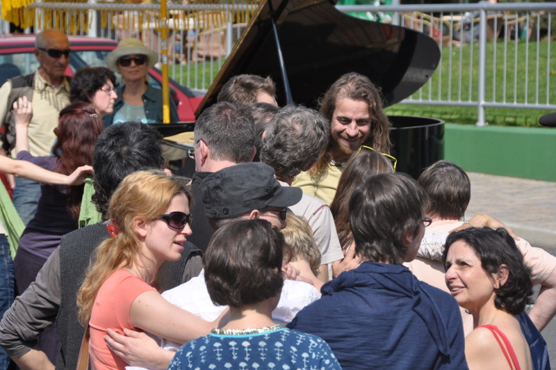 Pablo’s birthday party in the sun, on the highway. Marc played piano on the parking in a festive atmosphere. Songs, dances, kisses, emotions, laughs, tears.
