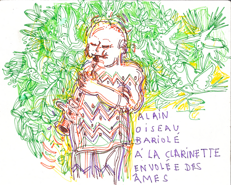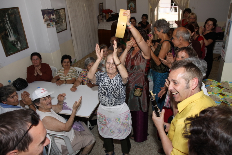Lors de notre entrée dans la salle de restaurant, quelques dizaines de personnes âgées prennent leur repas. Nous sortons sans tarder nos instruments légers, clarinette et tambourins.