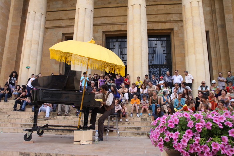 Music in front of Mathaf National Museum and then rolling piano with « guerilla des bisous » in the streets.