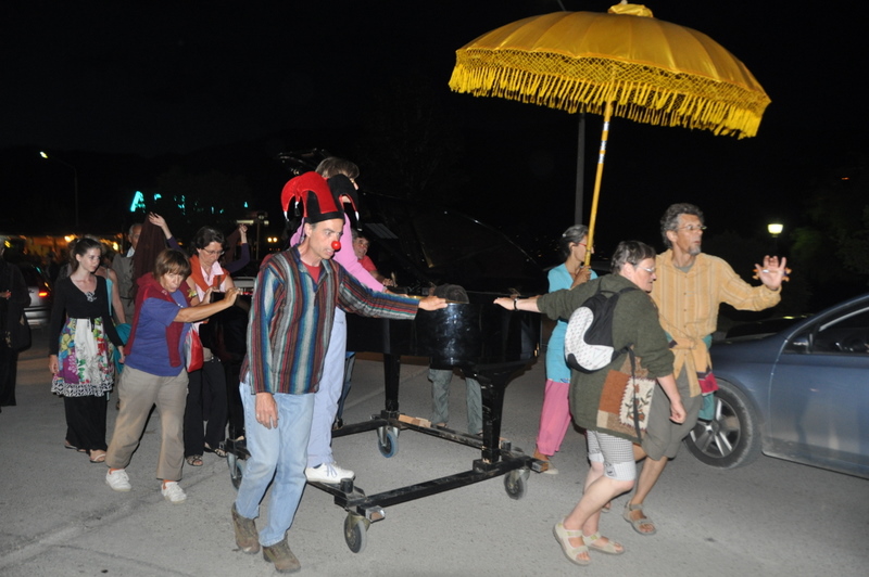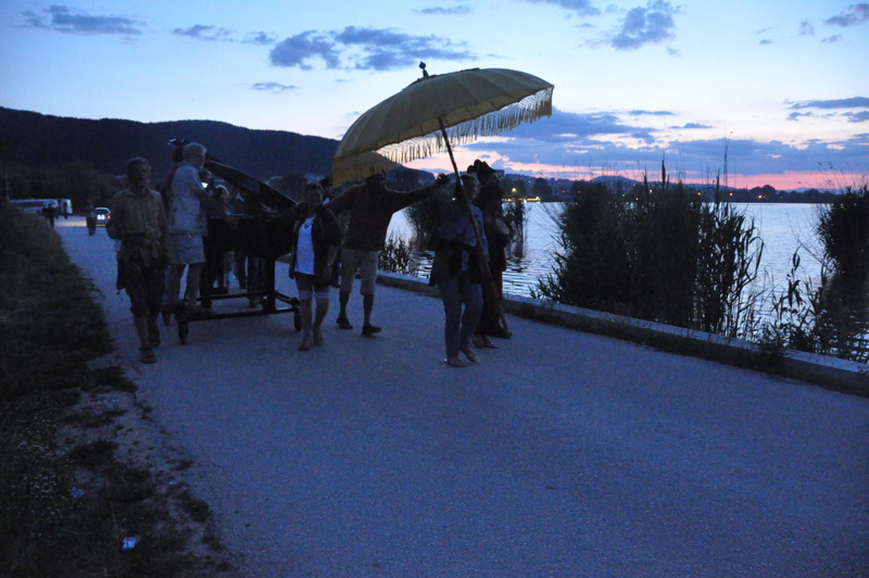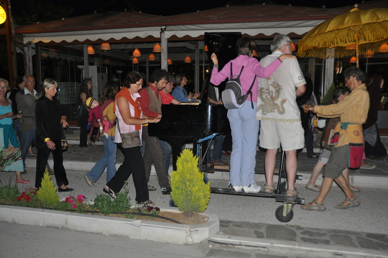 Beautiful road inside the mountains not far from the Meteores. Breakfast one beach of Egean sea. Evening and night in a old city, Ioannina. Rolling piano and « guérilla des bisous ».