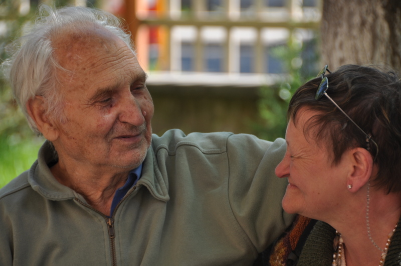 La porte de sa chambre, sobrement décorée, s’ouvre et nous la retrouvons sur son balcon. Elle est belle encore, Maria et toujours coquette. A la vue de l’œillet qui lui est offert, elle sourit, émue. Certes, sa mémoire lui joue des tours et ses souvenirs sont épars mais le passage de la Caravane a ravivé en elle une foule d’images. Son père, Assen, a été violoncelliste dans l’orchestre de l’armée bulgare et Maria aime beaucoup la musique. Aussi le passage de la Caravane est-il pour elle une bénédiction.