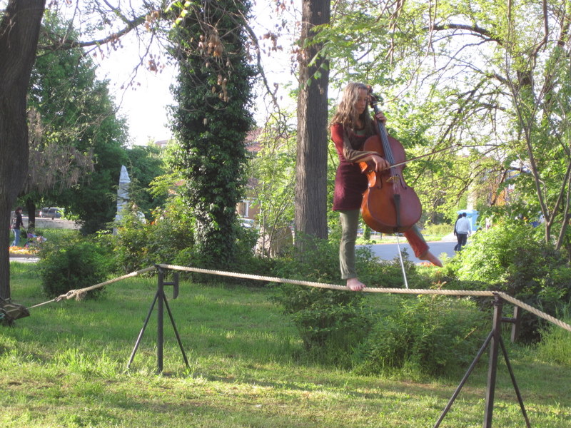 Céline et son violoncelle sur sa corde,