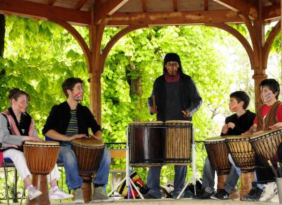 Tout a commencé avec le rachat d'une exploitation agricole où se sont annexées des éco-constructions principalement en bois et matériaux dits de cueillette (paille, terre). La municipalité, consciente de la désertification a accueilli favorablement le projet.