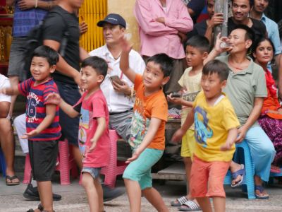 Une représentation est prévue au retour de notre visite du Mémorial GANDHI. Malheureusement, Marc VELLA et son piano n’ont pas pu être là comme prévu. Des grèves de camions empêchent encore l’acheminement de l’instrument depuis l’entreprise MANITOU. Le reste de la caravane se retrouve tout de même sur la petite place des monastères où nous avions spontanément improvisé la veille. Dès que nous sortons les instruments, les enfants se rassemblent avec curiosité et amusement autour de nous.